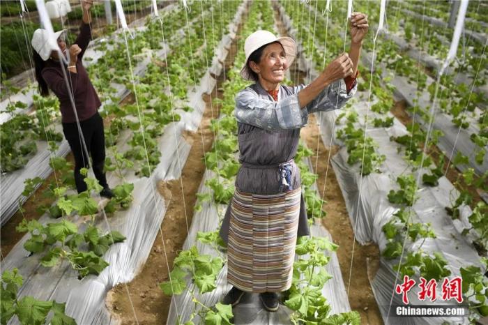 西藏山南扎囊縣綠之源智慧農(nóng)業(yè)項目的工人正在勞作。楊華峰 攝