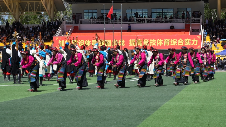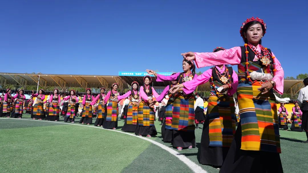 6月25日上午,主題為“相約珠峰·千人弦音”日喀則大型非遺歌舞展演在西藏自治區(qū)日喀則市上海體育場震撼上演。現(xiàn)場共1000名參與者同時表演日喀則非遺民俗舞蹈。