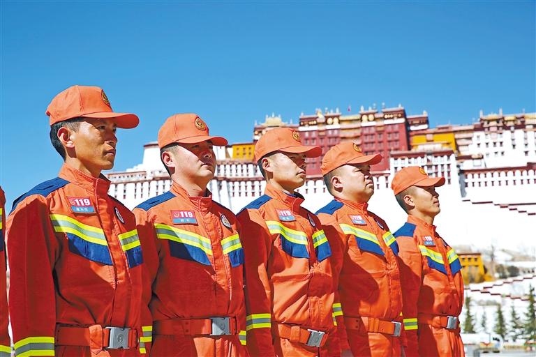 圖為消防指戰(zhàn)員在布達(dá)拉宮廣場(chǎng)執(zhí)勤。