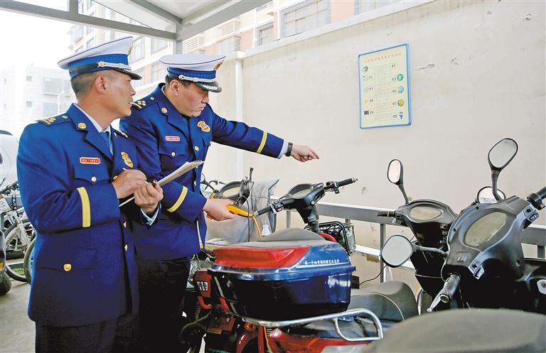 圖為消防指戰(zhàn)員深入小區(qū)檢查有無(wú)電動(dòng)車(chē)違規(guī)充電現(xiàn)象。