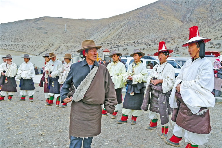 “小時(shí)候,我看見大人們?cè)诓莸厣咸疅嵴袂俊?,舞姿太漂亮了。我不想我的后代只能在書本里看到這個(gè)舞蹈,希望把它傳承下去?!?6歲的宗巴為了恢復(fù)“熱振曲卓”表演,于2015年成立了林周“熱振曲卓”傳播有限公司,致力于該舞蹈的傳承保護(hù)。