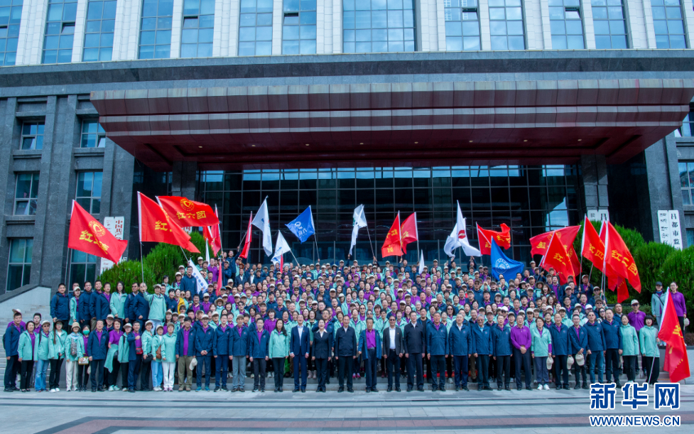 7月8日,來自北京200余家醫(yī)療單位的453位醫(yī)護人員和100余位愛心志愿者合影。新華網(wǎng) 旦增努布 攝