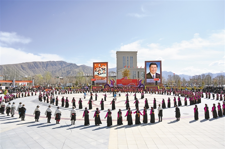 圖為日喀則市紀(jì)念西藏百萬農(nóng)奴解放64周年群眾聯(lián)歡活動(dòng)(3月28日攝)。 記者 扎西頓珠 攝