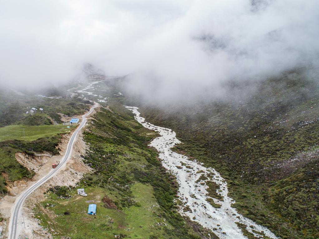 杰羅布村附近的牧場(chǎng)(7月1日攝,無(wú)人機(jī)照片)。新華社記者 孫非 攝