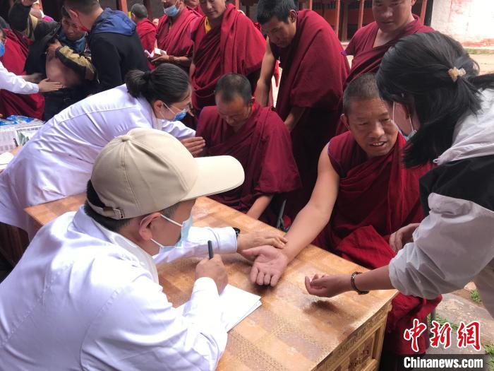 來自北京的10余位醫(yī)療專家11日走進西藏昌都市邊壩縣邊壩寺,為近40名僧人開展醫(yī)療公益活動?;顒蝇F(xiàn)場還舉行了“同心·共鑄中國心”健康診室揭牌儀式。