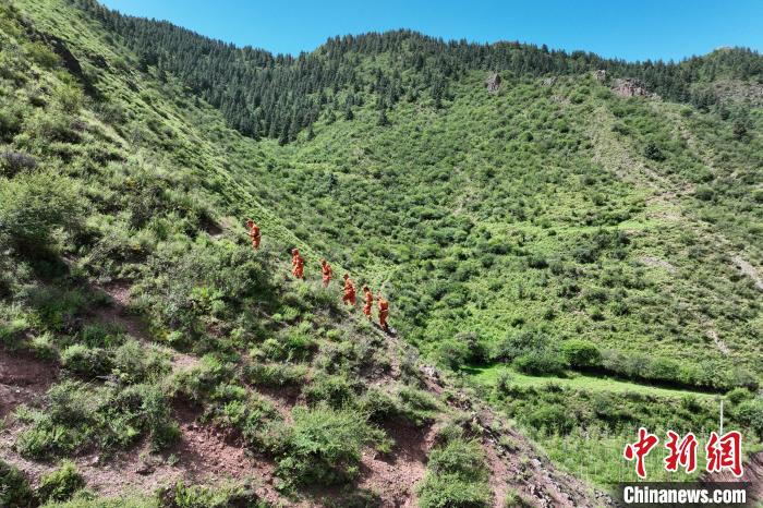 圖為消防員爬山尋找標(biāo)記點。姚天銳 攝