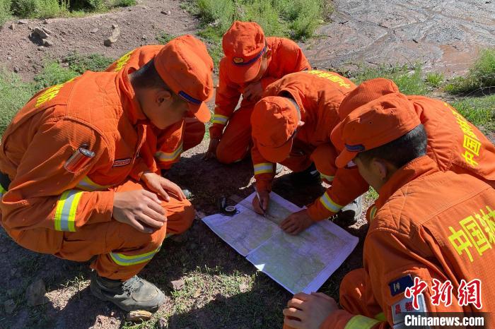 圖為消防員依據(jù)圖上換算的坐標(biāo)成功找到標(biāo)記點。姚天銳 攝