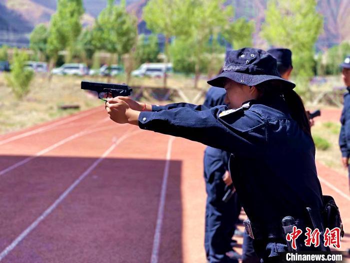 圖為訓(xùn)練場(chǎng)上的索朗曲珍。勒布邊境派出所供圖