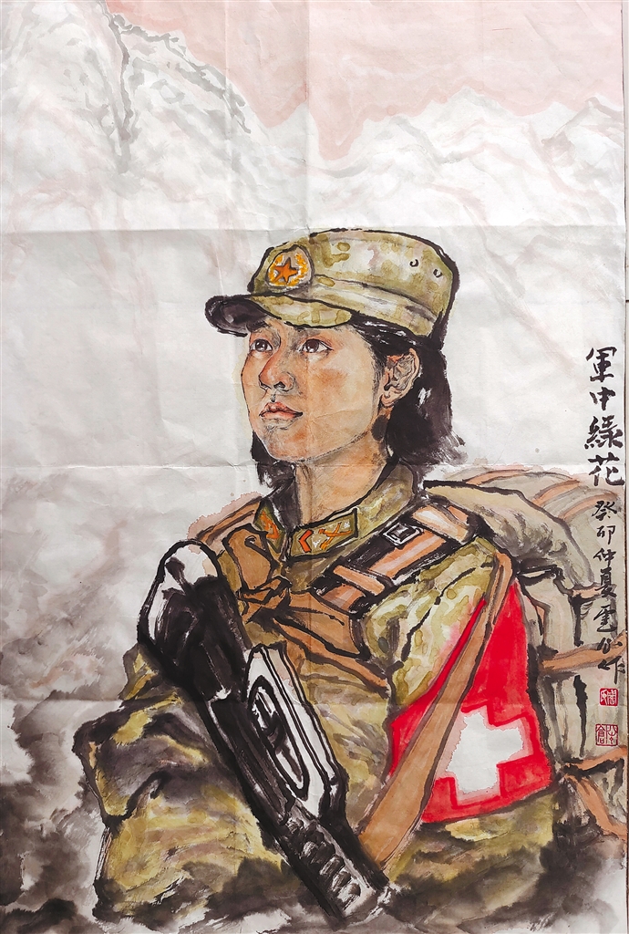 國畫《軍中綠花》。 周天亮 作