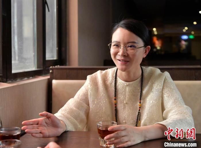 7月31日,非遺藏茶姜氏古茶“仁真杜吉”第15代傳承人萬姜紅接受采訪。李林 攝