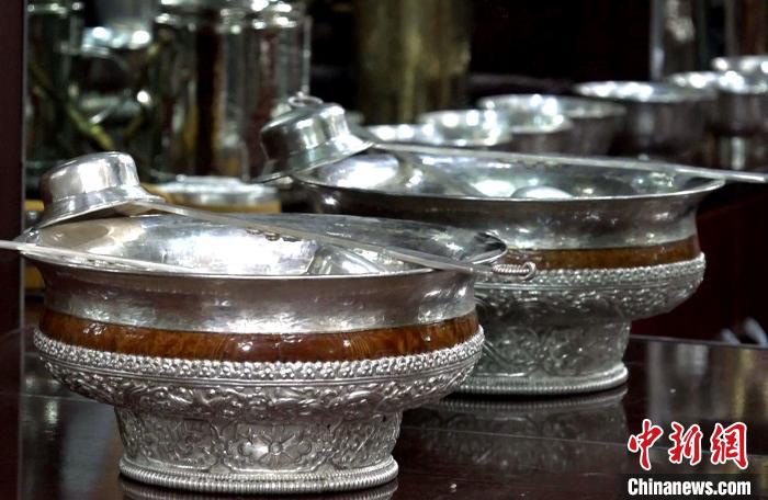 圖為扎西吉彩匠人打制的包銀木碗。貢桑拉姆 攝