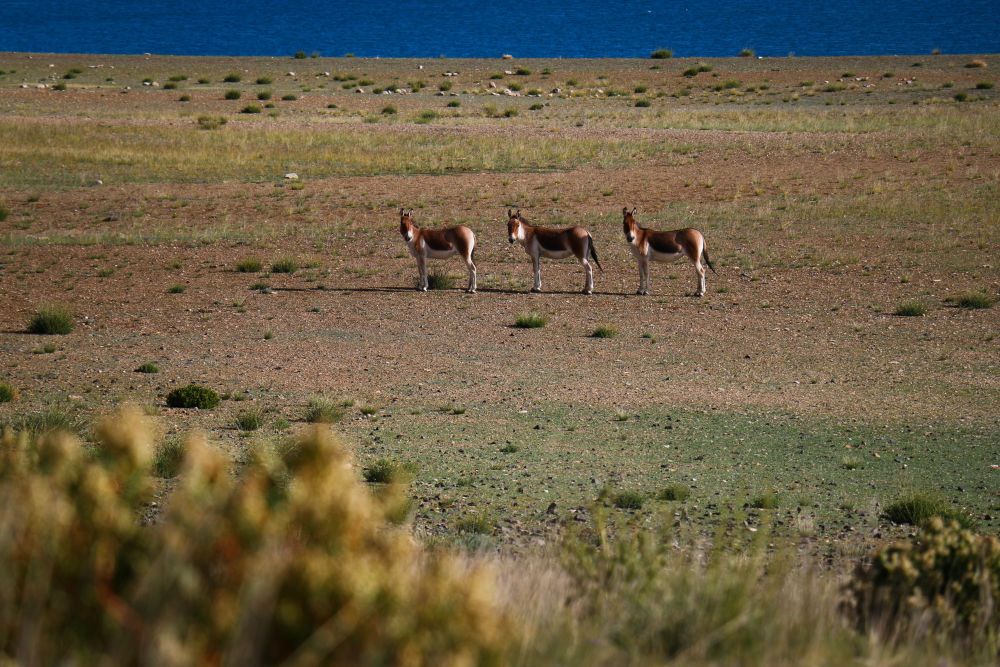 拉昂錯位于西藏阿里地區(qū)普蘭縣東北部的霍爾鄉(xiāng),湖面海拔4573米。拉昂錯與圣湖瑪旁雍錯相鄰,僅以一條公路相隔,遠處岡底斯山脈的主峰岡仁波齊巍峨聳立。藏野驢是國家一級保護動物,青藏高原特有物種,近年來隨著西藏生態(tài)保護力度不斷增大,藏野驢數(shù)量由原來的5萬只左右增加至現(xiàn)在的約9萬只。