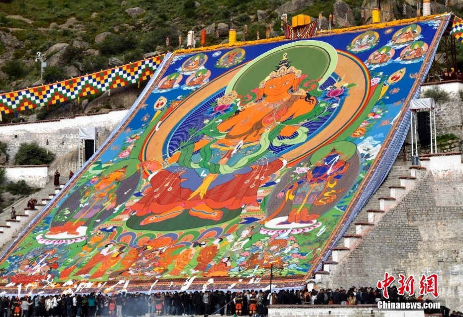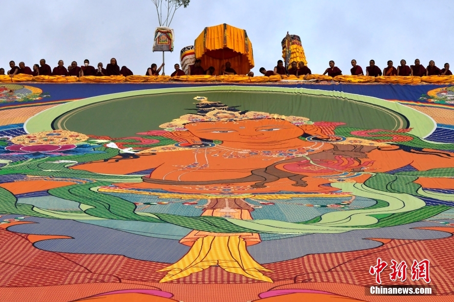 8月16日,巨幅強(qiáng)巴佛唐卡徐徐展開。
