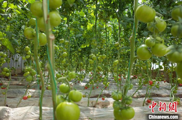 圖為溫室大棚內(nèi)種植的西紅柿?!≈x牧 攝