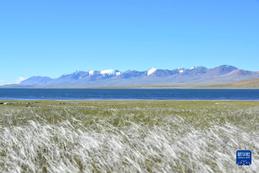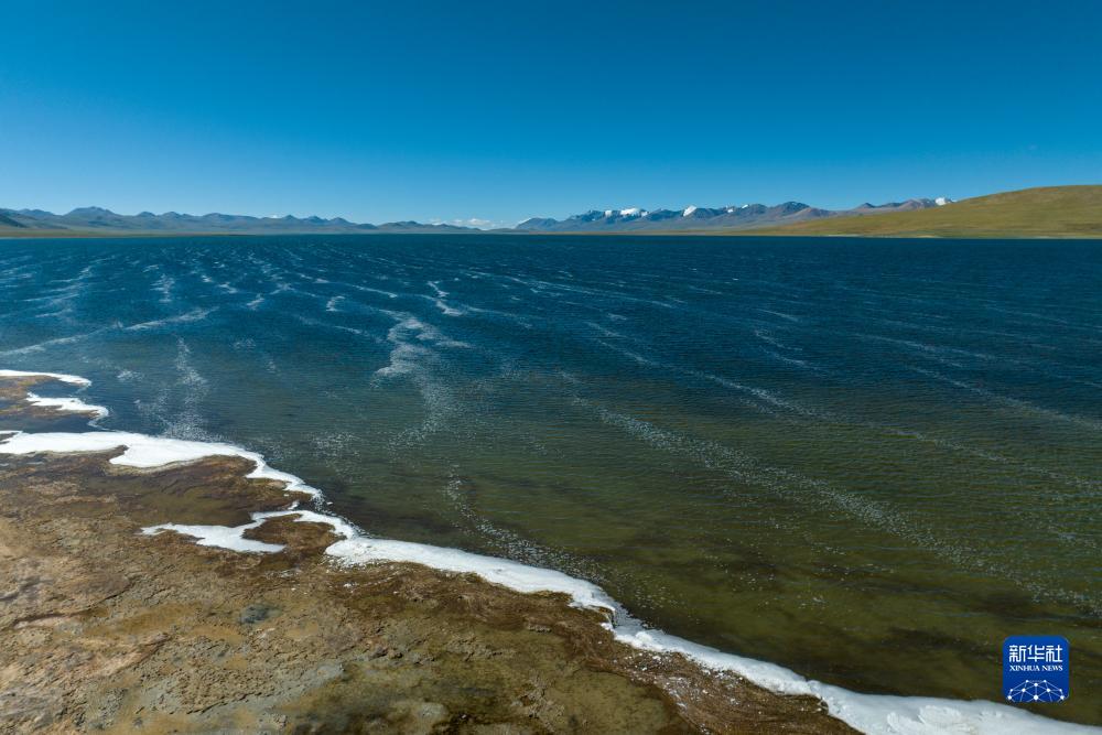 飛鳥從打加錯湖面掠過(無人機照片,8月30日攝)。新華社發(fā)(旦增努布 攝)
