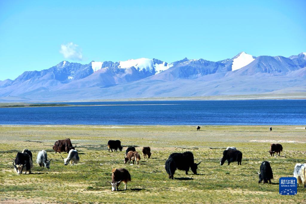 打加錯湖畔的牛群(8月30日攝)。新華社記者 劉文博 攝