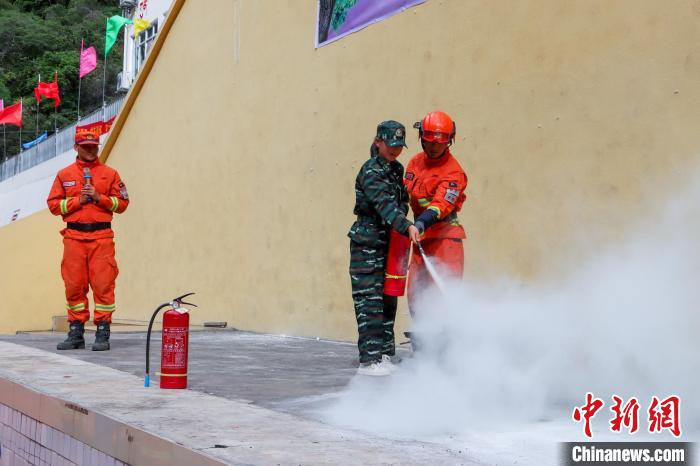 圖為學(xué)生體驗(yàn)滅火器使用。馮怡凡 攝