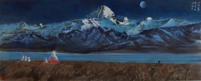 圖為劉洋國(guó)畫作品描繪的西藏岡仁波齊?!⒀?供圖