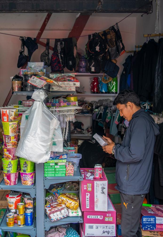 尼泊爾邊民在樟木口岸互市貿(mào)易市場選購商品(9月9日攝)。新華社記者 姜帆 攝