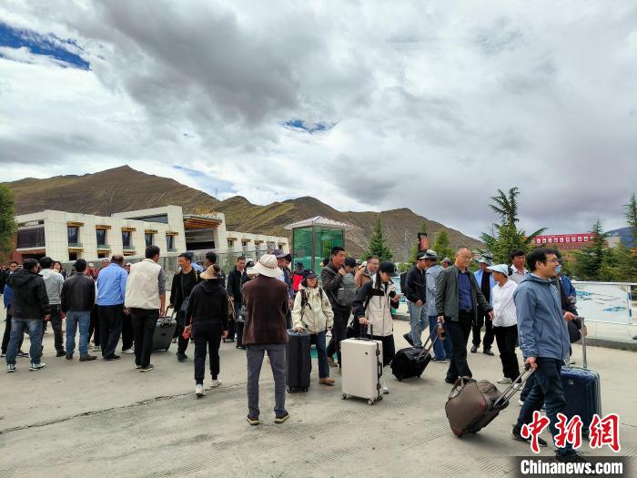 9月23日,乘坐高原復(fù)興號動車組列車的乘客抵達拉薩火車站。中新社記者 江飛波 攝
