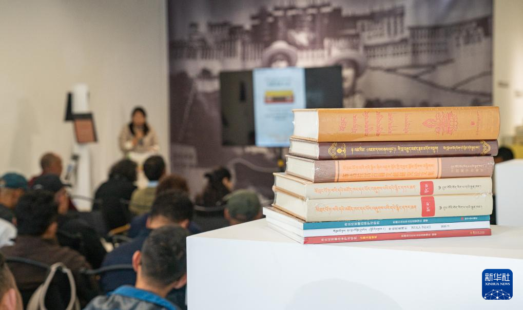 世界文化遺產(chǎn)布達拉宮9月28日最新發(fā)布的古籍文獻研究成果系列叢書。新華社記者 丁增尼達 攝