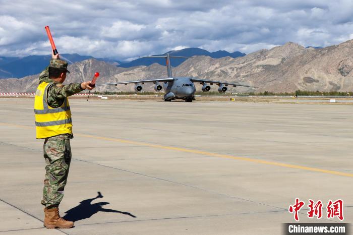 維和部隊(duì)官兵搭乘專機(jī)抵達(dá)拉薩貢嘎國際機(jī)場(chǎng)。張琦攝