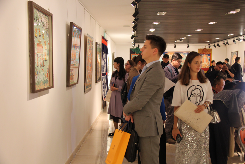 作為“西藏文化周”的重要活動(dòng)之一, “中國(guó)西藏·扎西德勒”唐卡精品展于當(dāng)晚同期開(kāi)幕。唐卡是中華民族藝術(shù)寶庫(kù)中彌足珍貴的非物質(zhì)文化遺產(chǎn),距今已有一千三百多年的歷史,用料考究,繪制復(fù)雜,色澤艷麗,經(jīng)久不退,被稱為“藏民族的百科全書(shū)”。本次展覽展出二十余幅具有代表性的精品唐卡佳作,內(nèi)容豐富、構(gòu)圖嚴(yán)謹(jǐn)、細(xì)致精微,神態(tài)生動(dòng)傳神,線條沉穩(wěn)細(xì)膩,色彩艷麗不俗,生動(dòng)詮釋了藏民族的非凡智慧,展現(xiàn)了唐卡獨(dú)特的魅力。當(dāng)晚,唐卡欽則派代表性傳承人白瑪達(dá)娃在現(xiàn)場(chǎng)開(kāi)展唐卡作畫(huà)、授課,引起在場(chǎng)嘉賓觀眾的驚嘆贊美和參與熱情!