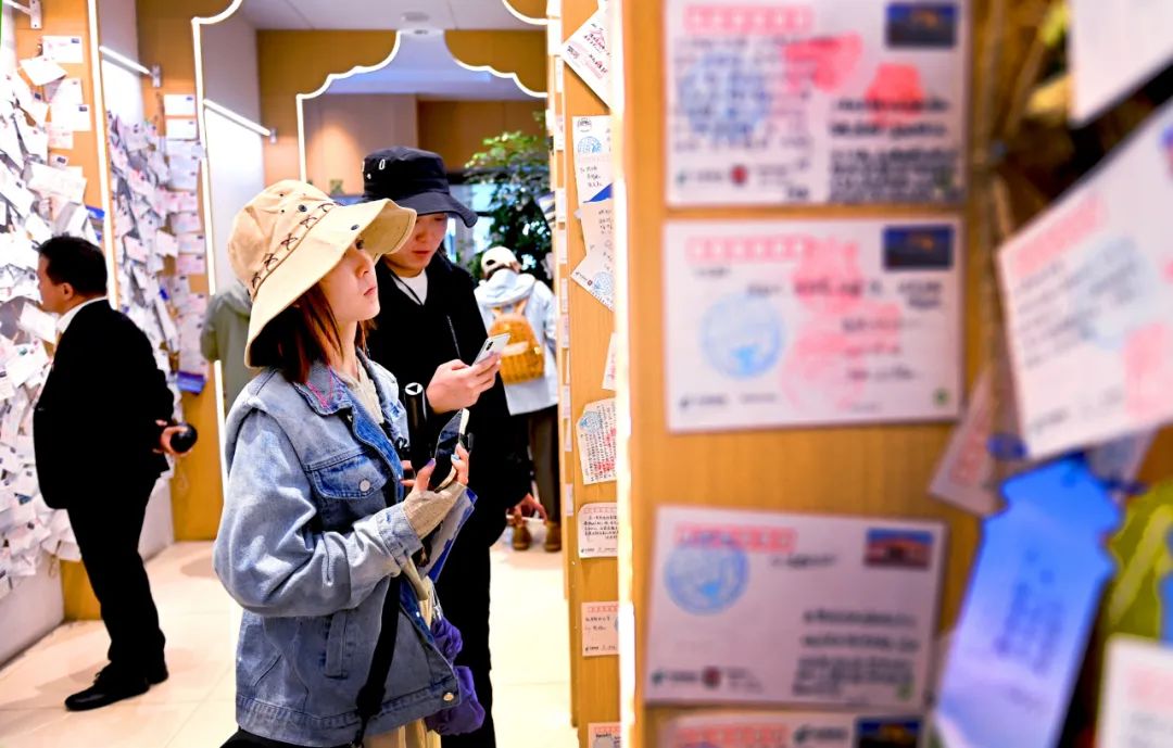 游客參觀“天上西藏”主題郵局明信片墻。人民政協(xié)報(bào)記者 田福良 攝