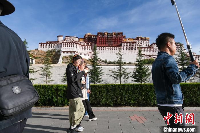 圖為“雙節(jié)”期間,游客路過布達(dá)拉宮。江飛波 攝
