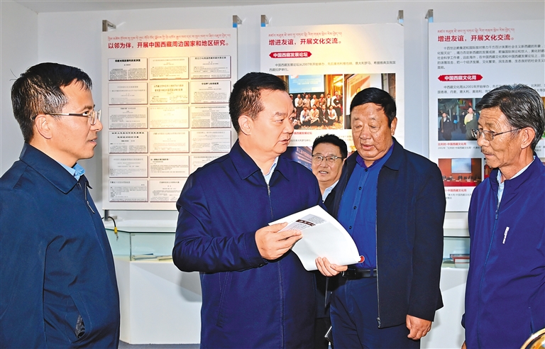 10月7日,西藏自治區(qū)黨委書記王君正前往自治區(qū)社科院、社科聯(lián)調研。這是王君正在考察全區(qū)哲學社會科學組織體系建設、學術研究、人才工作情況。記者 旦增西旦 攝