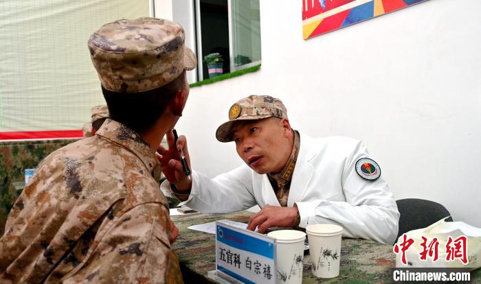 圖為巡診專家了解官兵身體情況。彭毅供圖