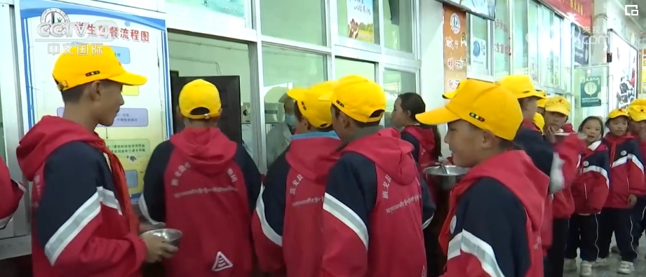 學(xué)校的學(xué)生絕大部分來(lái)自牧區(qū),寄宿制能夠保證更好的教學(xué)質(zhì)量,但并不強(qiáng)制。晚上下課后,離學(xué)校近的學(xué)生由家長(zhǎng)接走,格桑堅(jiān)才則和小伙伴去食堂吃晚飯。學(xué)校還配備生活老師,照顧學(xué)生的日常起居、提供日用品。這些費(fèi)用都由中國(guó)從1985年開(kāi)始,對(duì)西藏自治區(qū)實(shí)施的教育“三包”政策負(fù)擔(dān)。包吃、包住、包學(xué)習(xí)費(fèi)用,學(xué)生家庭不用出一分錢。2023年這一政策的補(bǔ)助金額又再次提高,達(dá)到年生均4000—5000元。這所學(xué)校的升學(xué)率能達(dá)到100%。