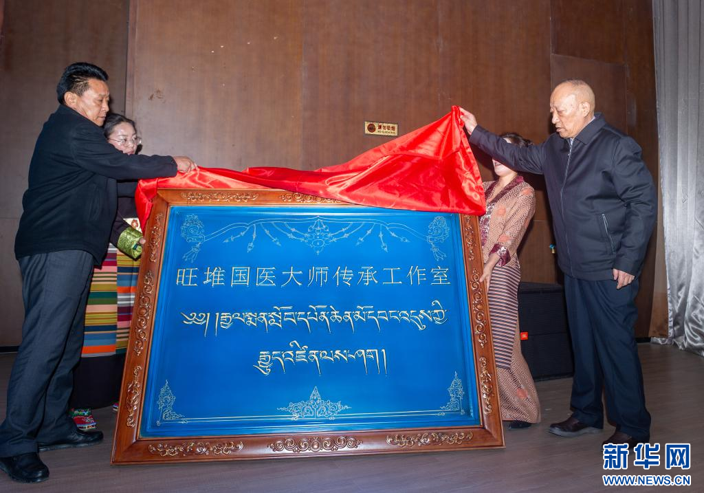 10月26日,國醫(yī)大師旺堆和岐黃學(xué)者、全國名老中醫(yī)藥專家尼瑪次仁傳承工作室揭牌儀式現(xiàn)場。新華社記者 旦增尼瑪曲珠 攝