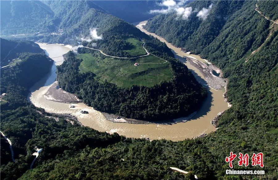 西藏林芝市墨脫縣雅魯藏布江果果塘大拐彎,景色雄奇壯觀。(無人機照片)李林 攝