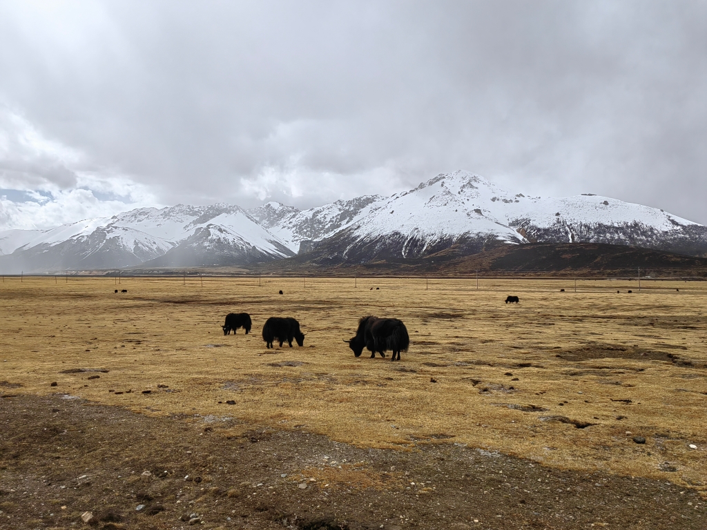 雪山之下,牦牛隨處可見(jiàn)。華龍網(wǎng)記者 李天春 攝