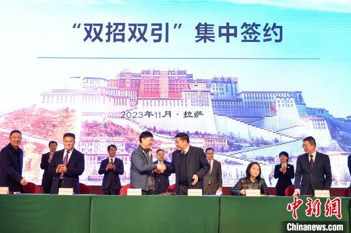 14日,西藏自治區(qū)在拉薩舉行“雙招雙引”(援藏招商引資、招才引智)集中簽約儀式。簽約儀式上,共簽約援藏招商引資項(xiàng)目20個,協(xié)議資金103.08億元(人民幣,下同),涉及清潔能源、生物科技、特色農(nóng)牧、綠色工業(yè)、現(xiàn)代服務(wù)等領(lǐng)域。21名引進(jìn)專家人才代表參加現(xiàn)場簽約。