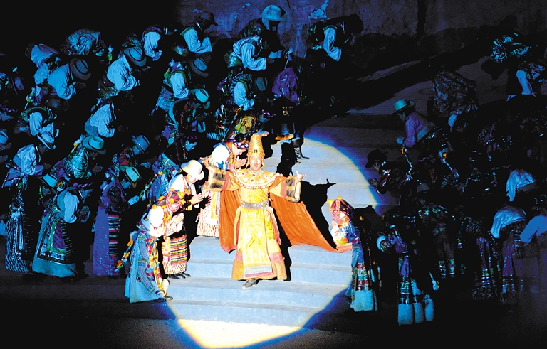 圖為大型實(shí)景史詩劇《文成公主》演出現(xiàn)場(chǎng)。 記者 次仁平措 唐斌 攝