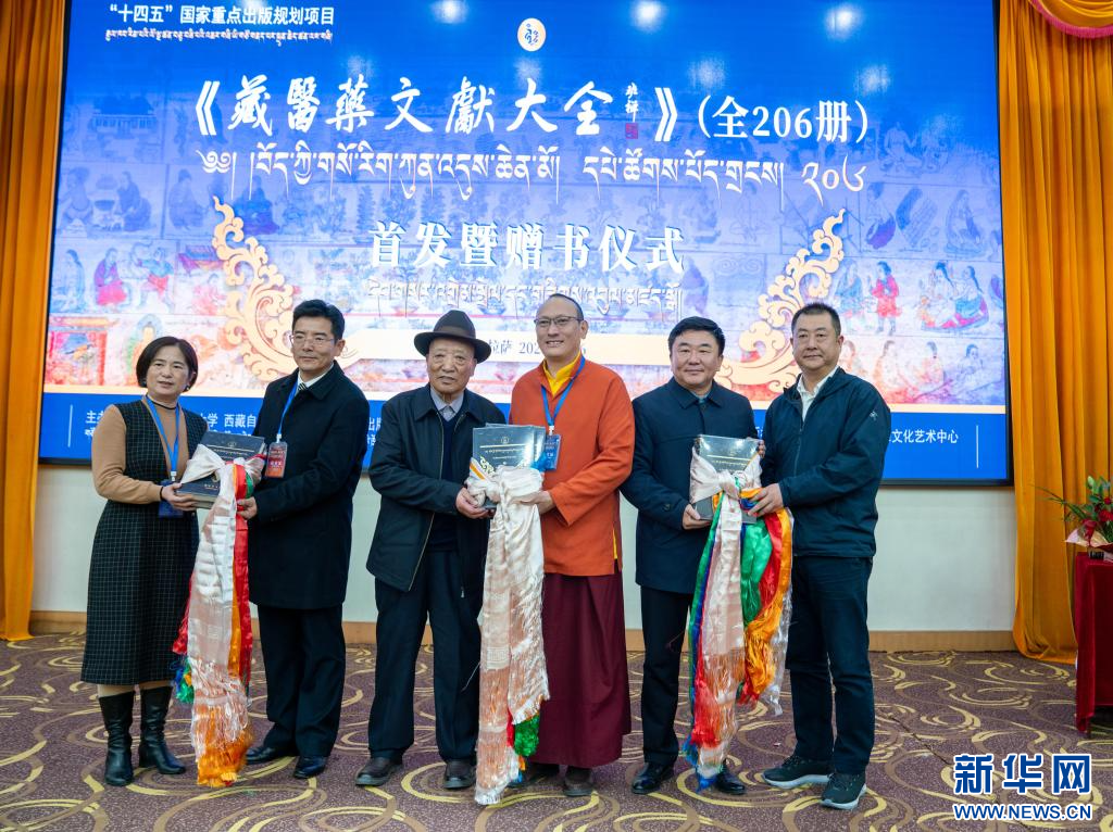 11月16日,“十四五”國家重點出版規(guī)劃項目《藏醫(yī)藥文獻大全》首發(fā)暨贈書儀式現(xiàn)場。新華社記者 旦增尼瑪曲珠 攝