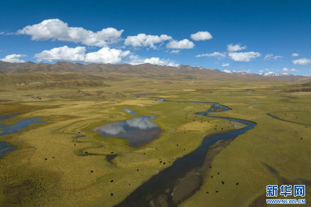 在西藏措美縣境內(nèi)拍攝的牦牛(無(wú)人機(jī)照片)。新華網(wǎng) 旦增努布 攝