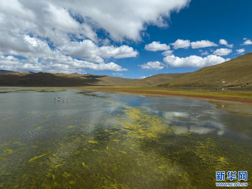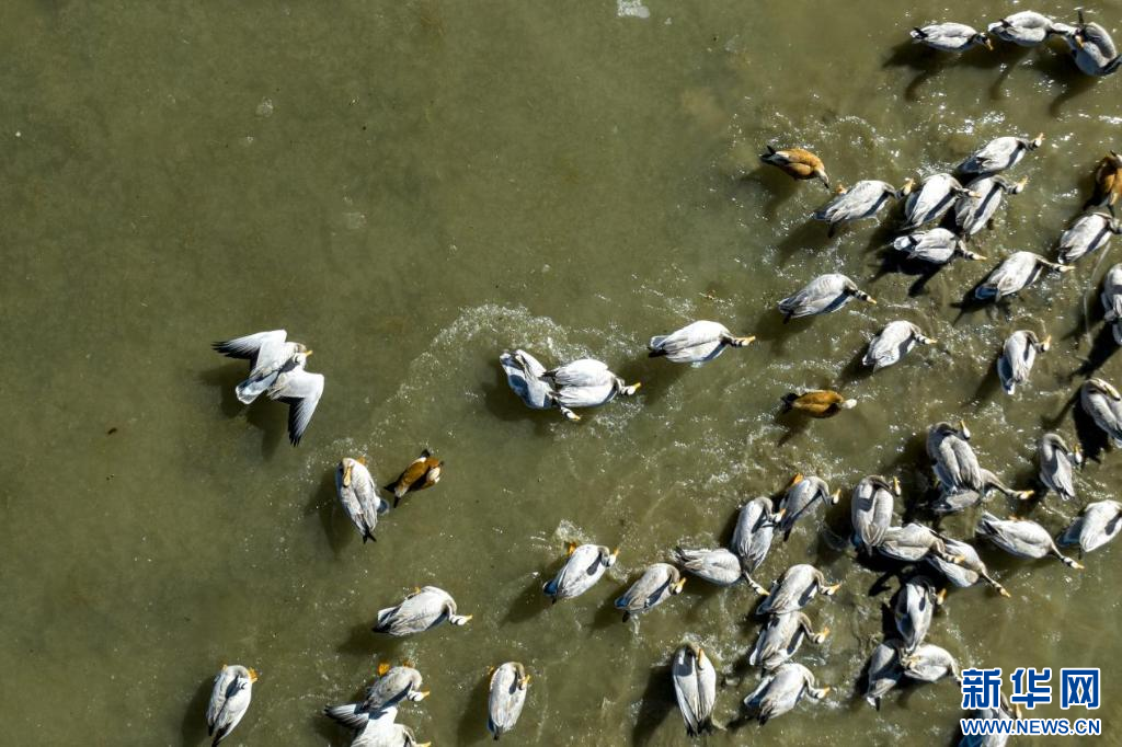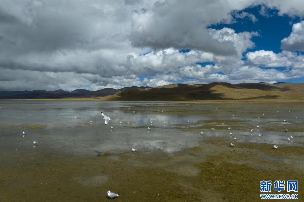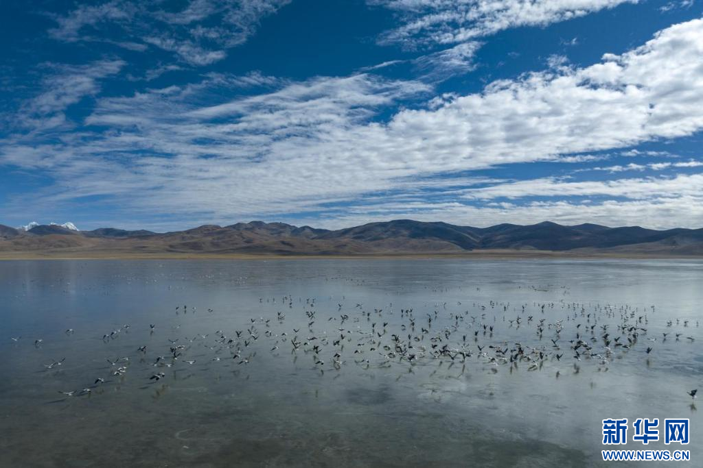 11月17日,在哲古湖拍攝的鳥群(無人機照片)。新華網(wǎng) 旦增努布 攝