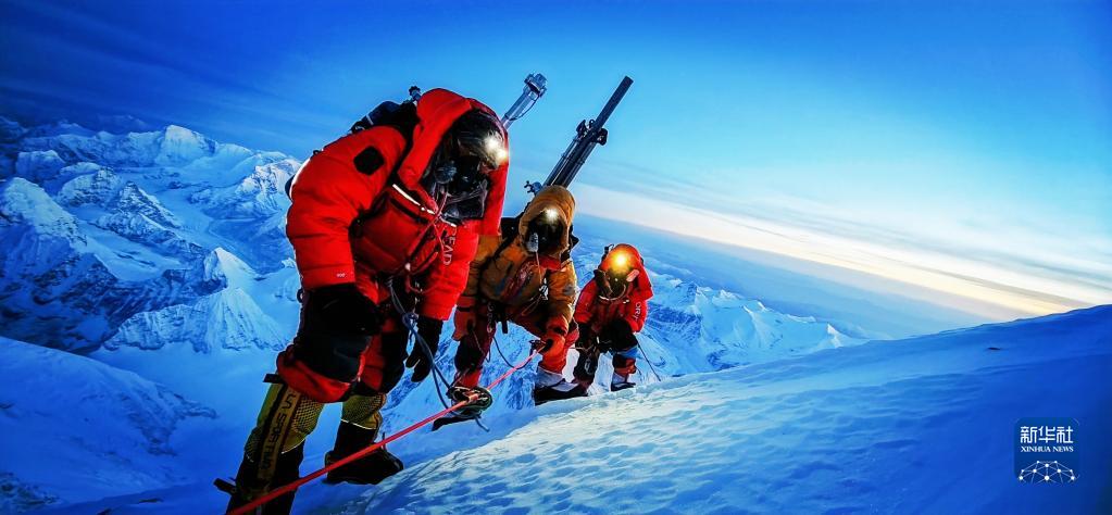 中國(guó)登山者在攀登珠峰(5月23日攝)。新華社發(fā)(川藏高山向?qū)f(xié)作隊(duì)供圖)