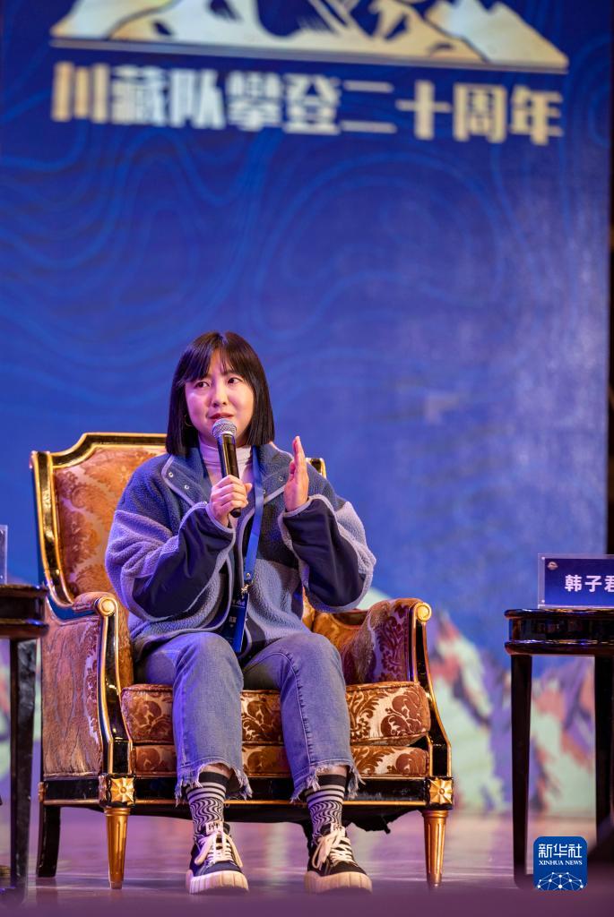 12月11日,第一位分別從南坡和北坡登上珠穆朗瑪峰的中國(guó)女性登山者韓子君在交流大會(huì)上分享自己的珠峰故事。新華社記者 黃耀漫 攝