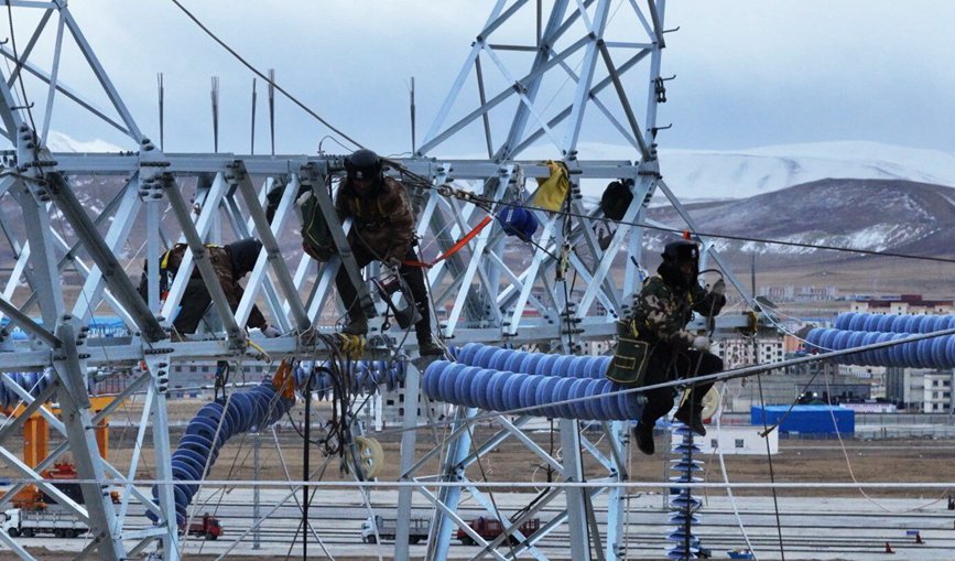 “還有10米,5米,導線到位!”12月12日,18時,隨著對講機傳出的N5號塔位導線到位,標志著海拔4600米的西藏自治區(qū)那曲市色尼區(qū)國能100兆瓦風電110千伏送出工程全部貫通。
