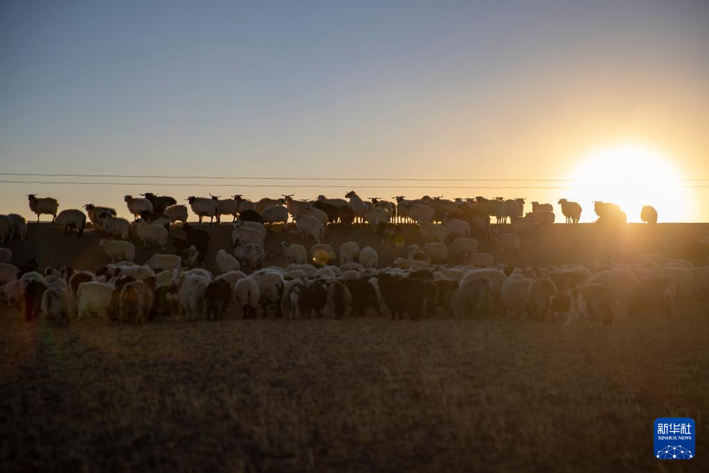 太陽落山,丹增家的羊從草場趕回棚圈(12月18日攝)。新華社記者 姜帆 攝