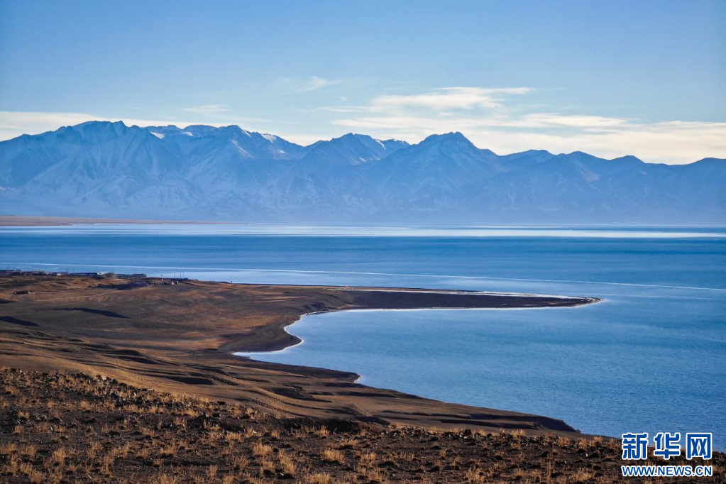 12月20日拍攝的當(dāng)惹雍錯(cuò)和遠(yuǎn)處的雪山。新華網(wǎng) 旦增努布 攝