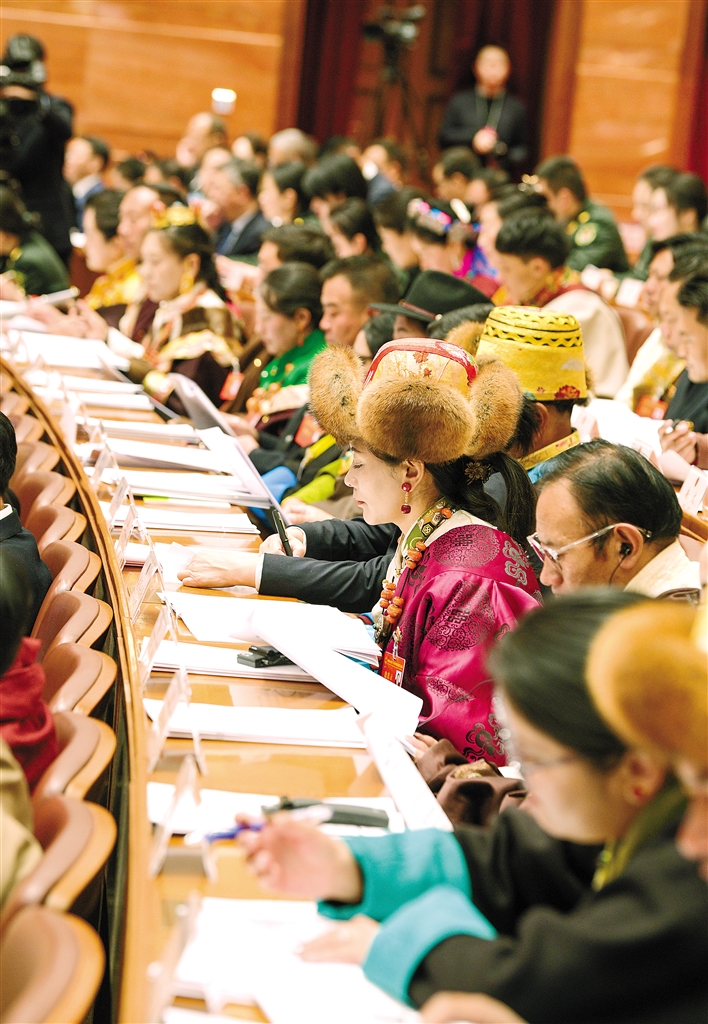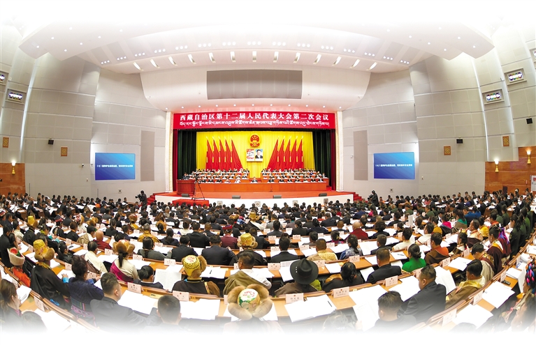 西藏自治區(qū)十二屆人大二次會議現(xiàn)場?!∮浾摺∨硕唷z