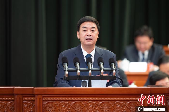 圖為西藏自治區(qū)主席嚴(yán)金海作政府工作報(bào)告。貢嘎來(lái)松 攝