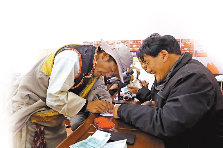 當(dāng)記者走進(jìn)改則縣改則鎮(zhèn)圓夢(mèng)新居社區(qū),一場(chǎng)別開生面的合作社分紅儀式正在火熱進(jìn)行?,F(xiàn)場(chǎng),農(nóng)牧民盛裝出席,數(shù)著自家所得分紅,喜悅之情溢于言表。