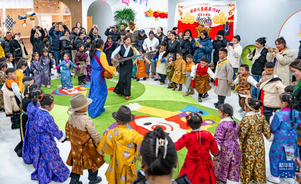 2月3日,手偶表演演員在拉薩的兒童藏裝派對上和孩子們互動。新華社記者 丁增尼達(dá) 攝
