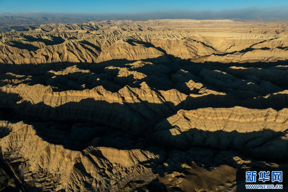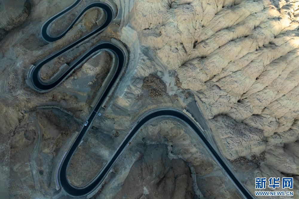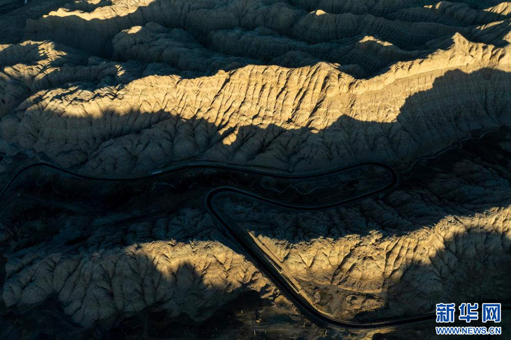1月31日拍攝的札達(dá)土林和公路(無(wú)人機(jī)照片)。新華網(wǎng) 旦增努布 攝